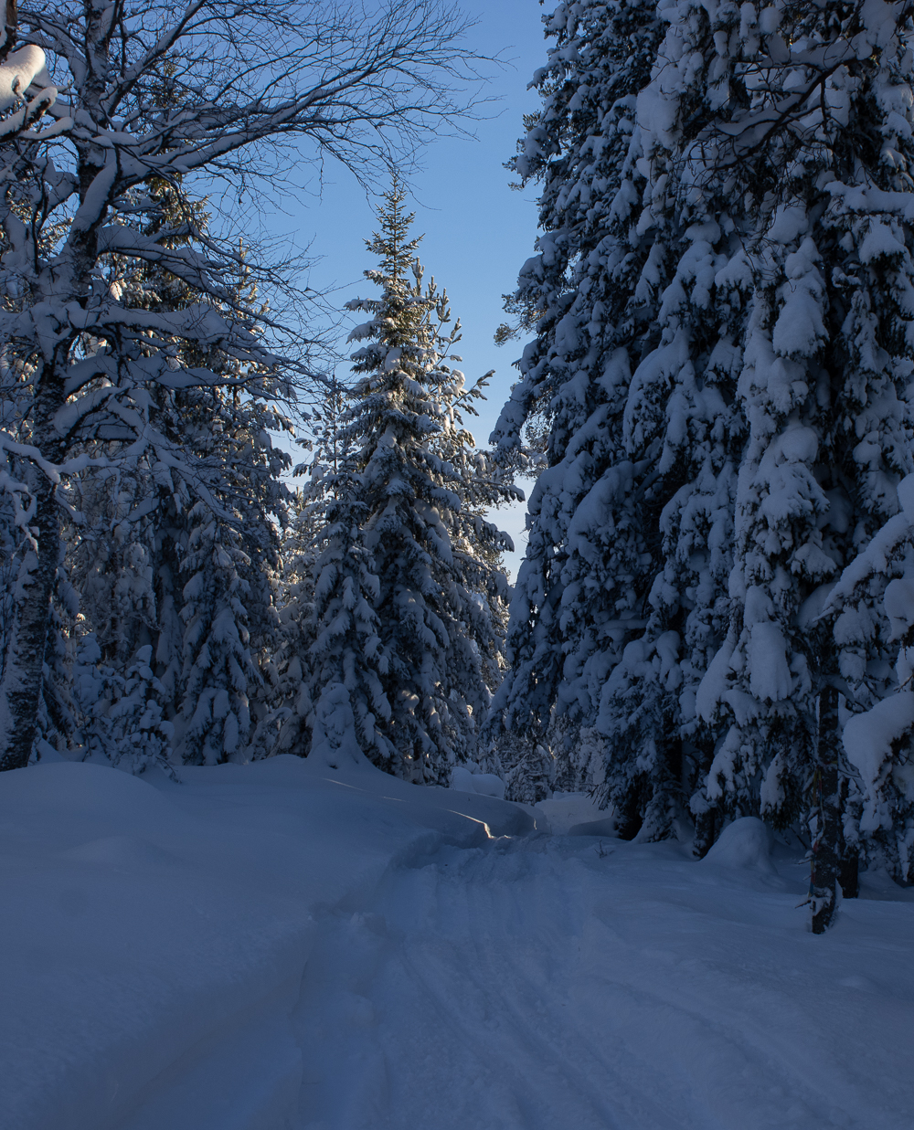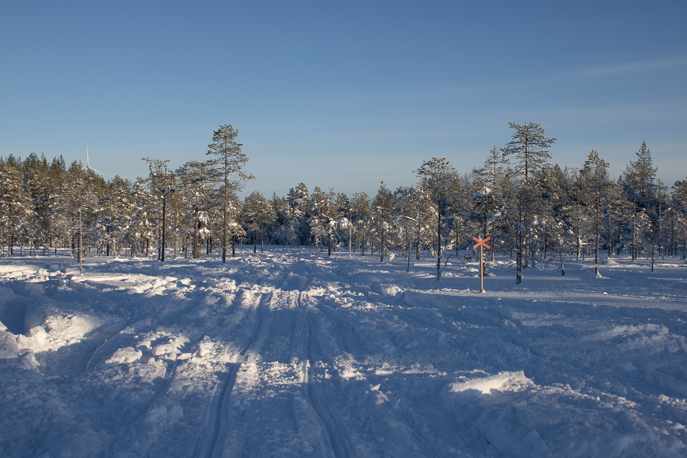 Om det är fint sparkföre eller oplogat kan man köra vägen upp och skoterspåret tillbaka. Då blir turen en åtta. Annars kör man bara en liten bit på vägen och gör som en ögla tillbaka i skoterspåret.